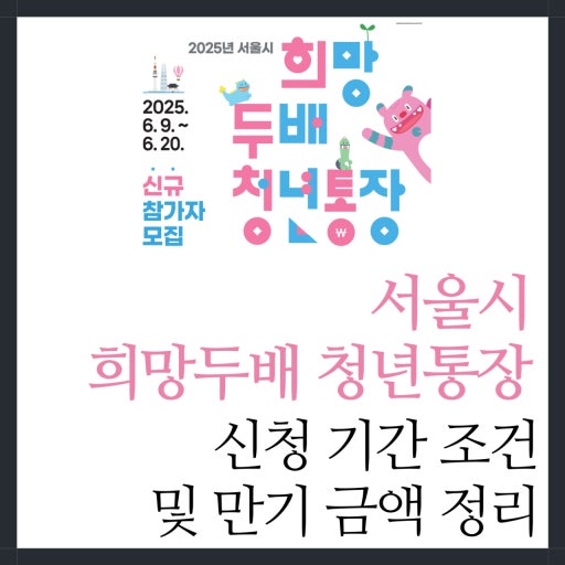 올해도 2025년 희망두배 청년통장이 모집을 시작했으며, 지원 요건만 충족하면 누구나 신청 가능하므로, 서울시에 거주하는 청년이라면 절대 놓쳐서는 안 될 기회입니다.