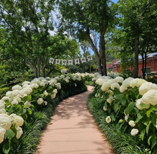 - 특징: 다양한 종류의 수국과 숲의 조화