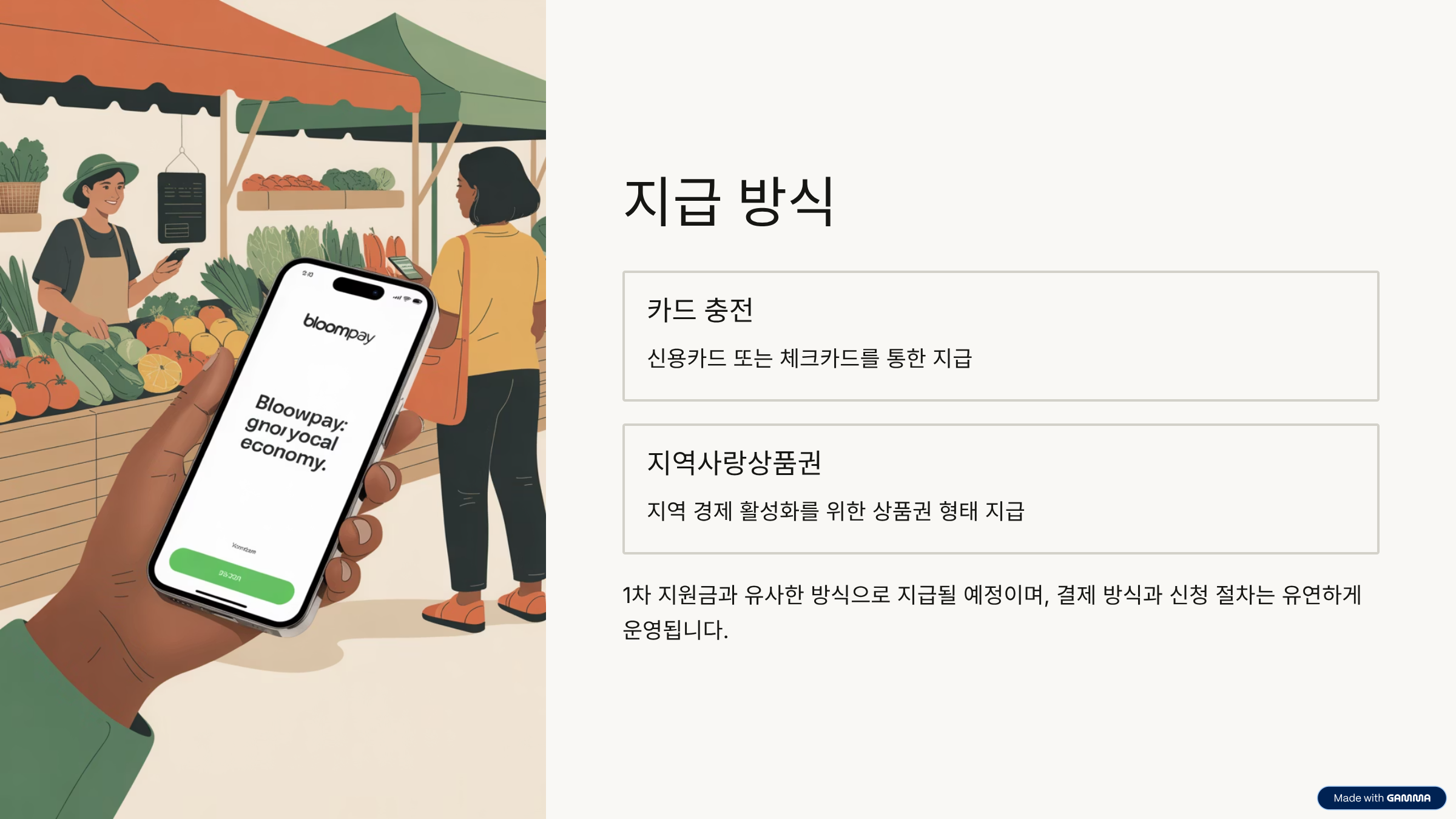 | 지급 방식 | 카드, 지역사랑상품권 등 (1차 유사 방식) |