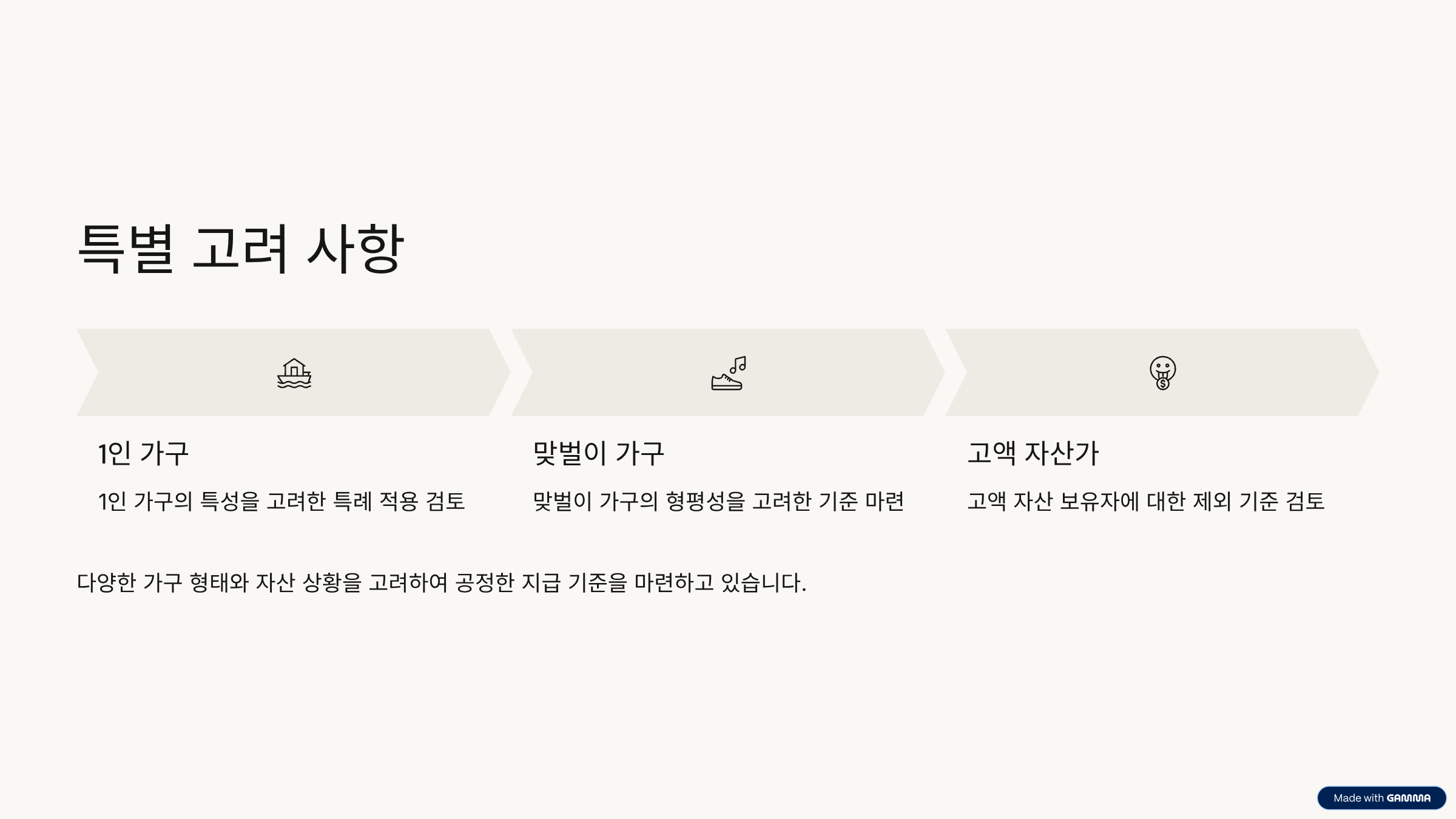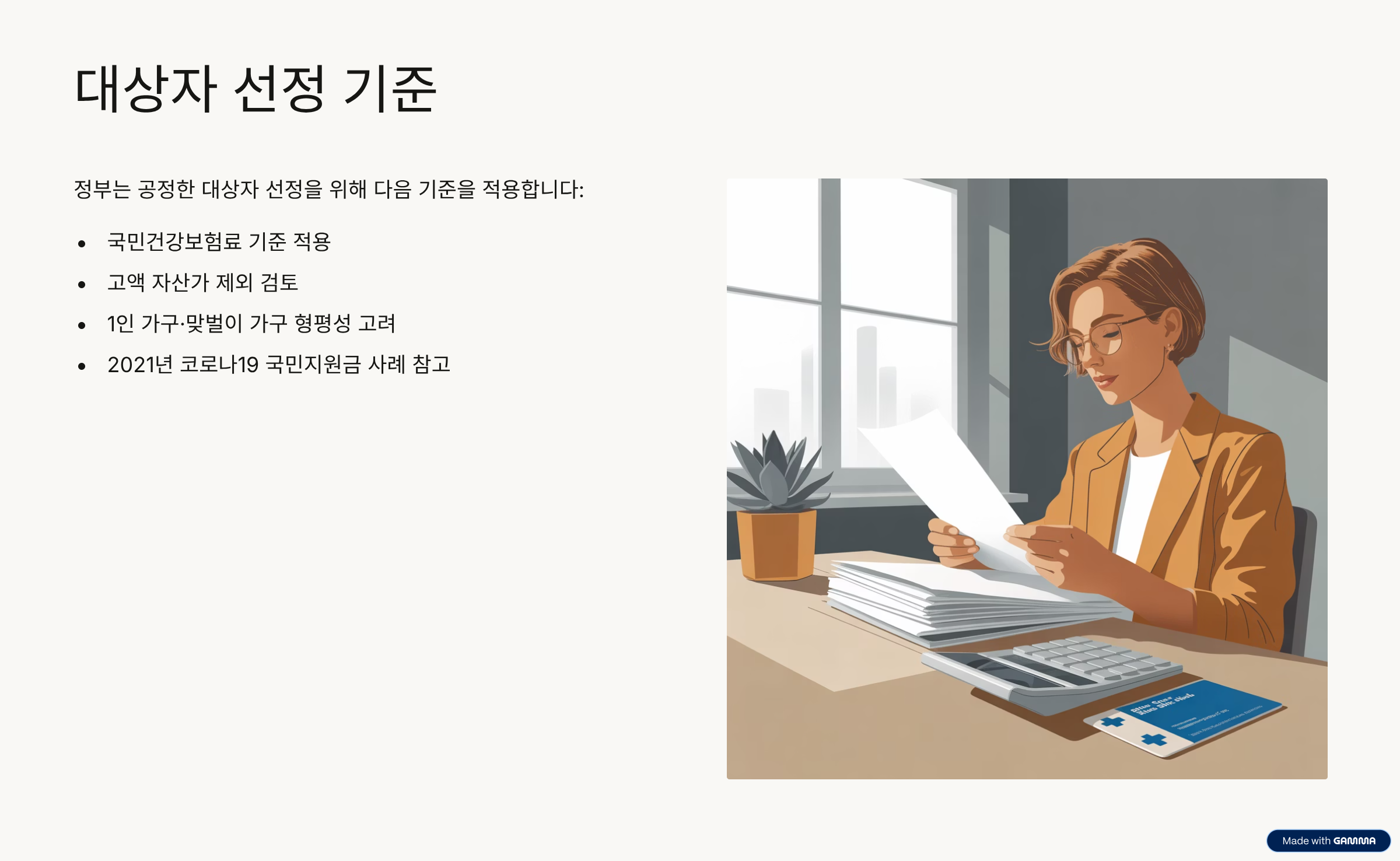 – 정부는 2021년의 코로나19 국민지원금 사례를 참고하며, 고액 자산 보유자 및 특수 가구에 대한 공정한 기준을 마련하고 있습니다.