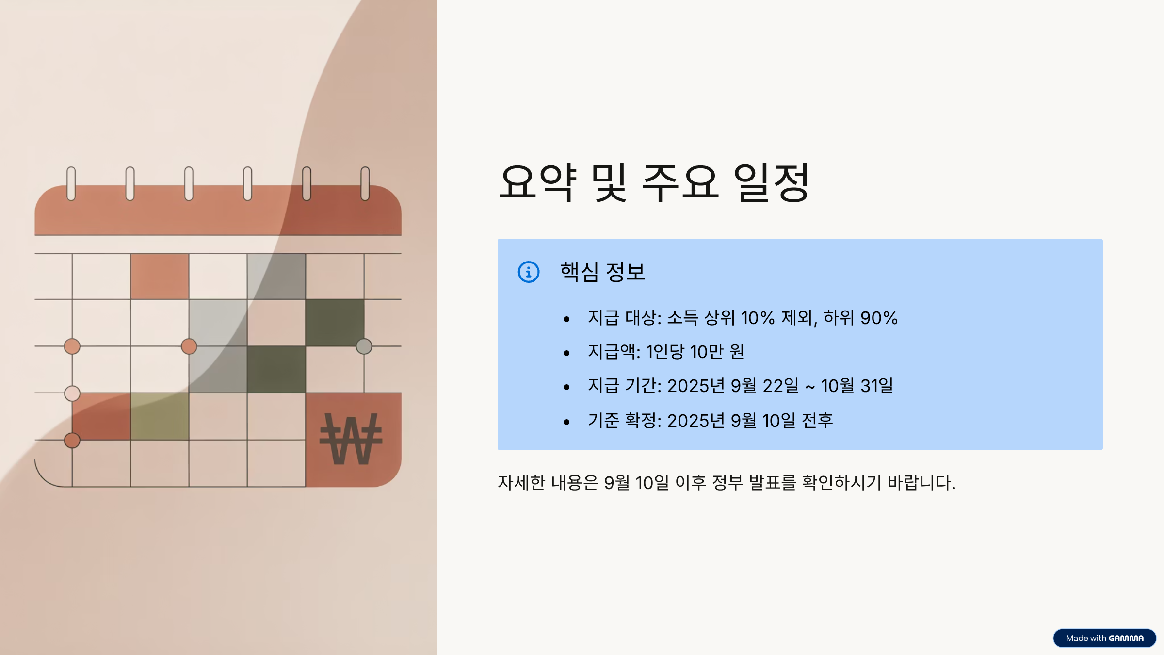 | 기준 확정 | 2025년 9월 10일 전후 |