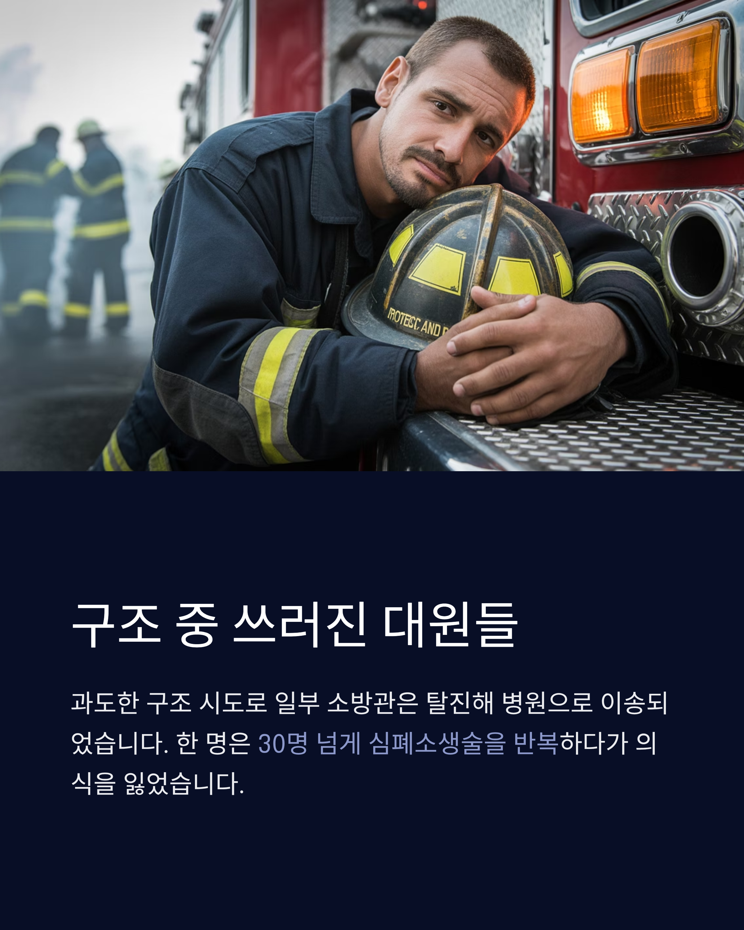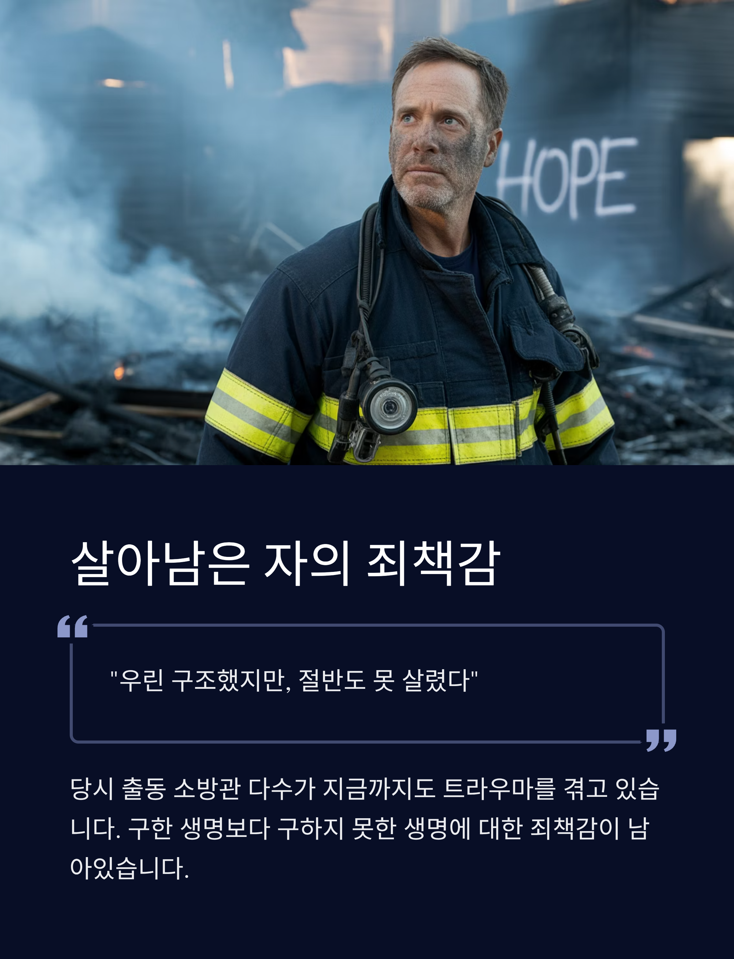 현장에 있던 소방관들은 아직도 "더 살릴 수 있었는데"라는 자책감을 말하고 있습니다.