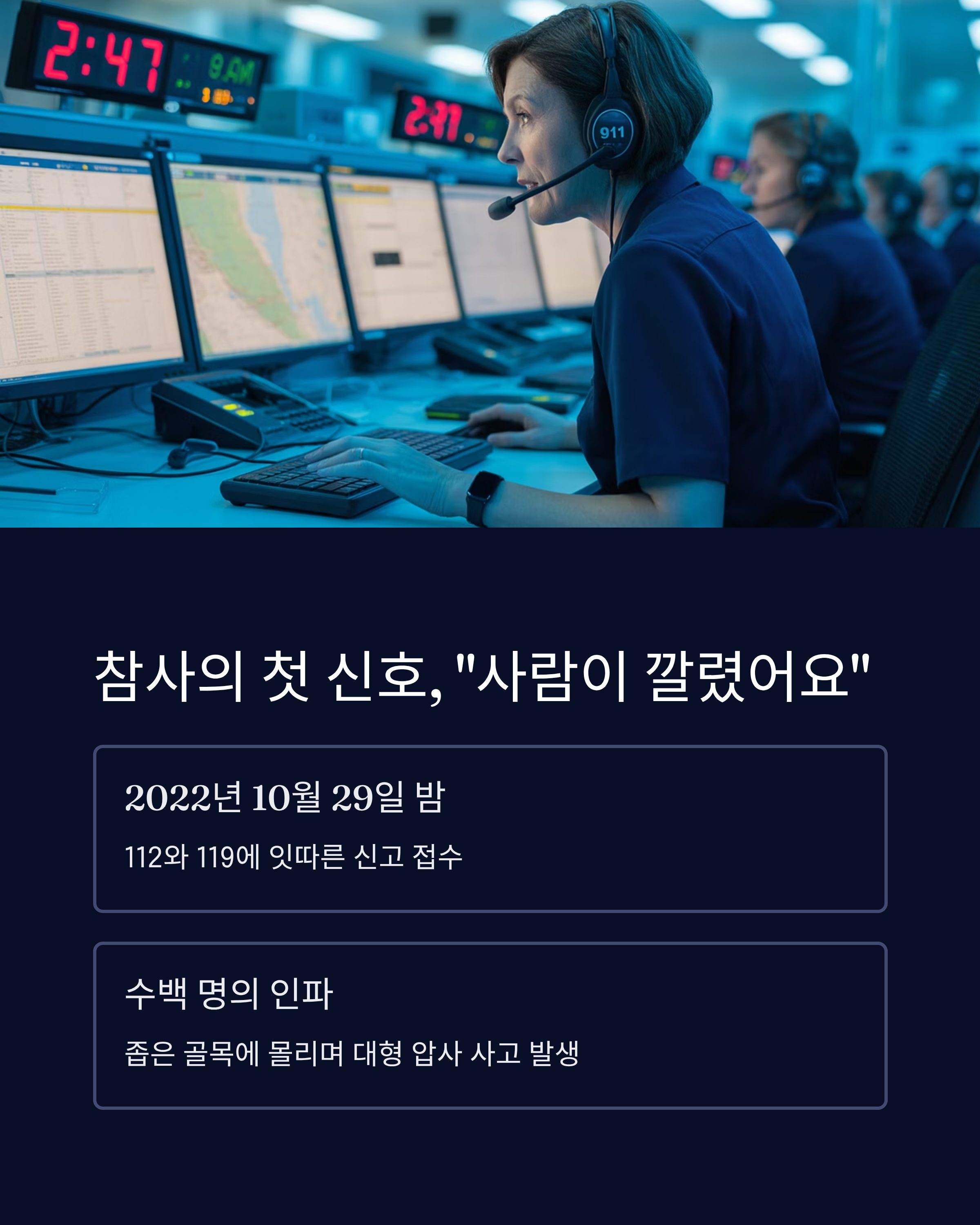 사고 접수는 10월 29일 오후 10시 15분경, "사람이 깔렸어요"라는 신고로 시작됐습니다.