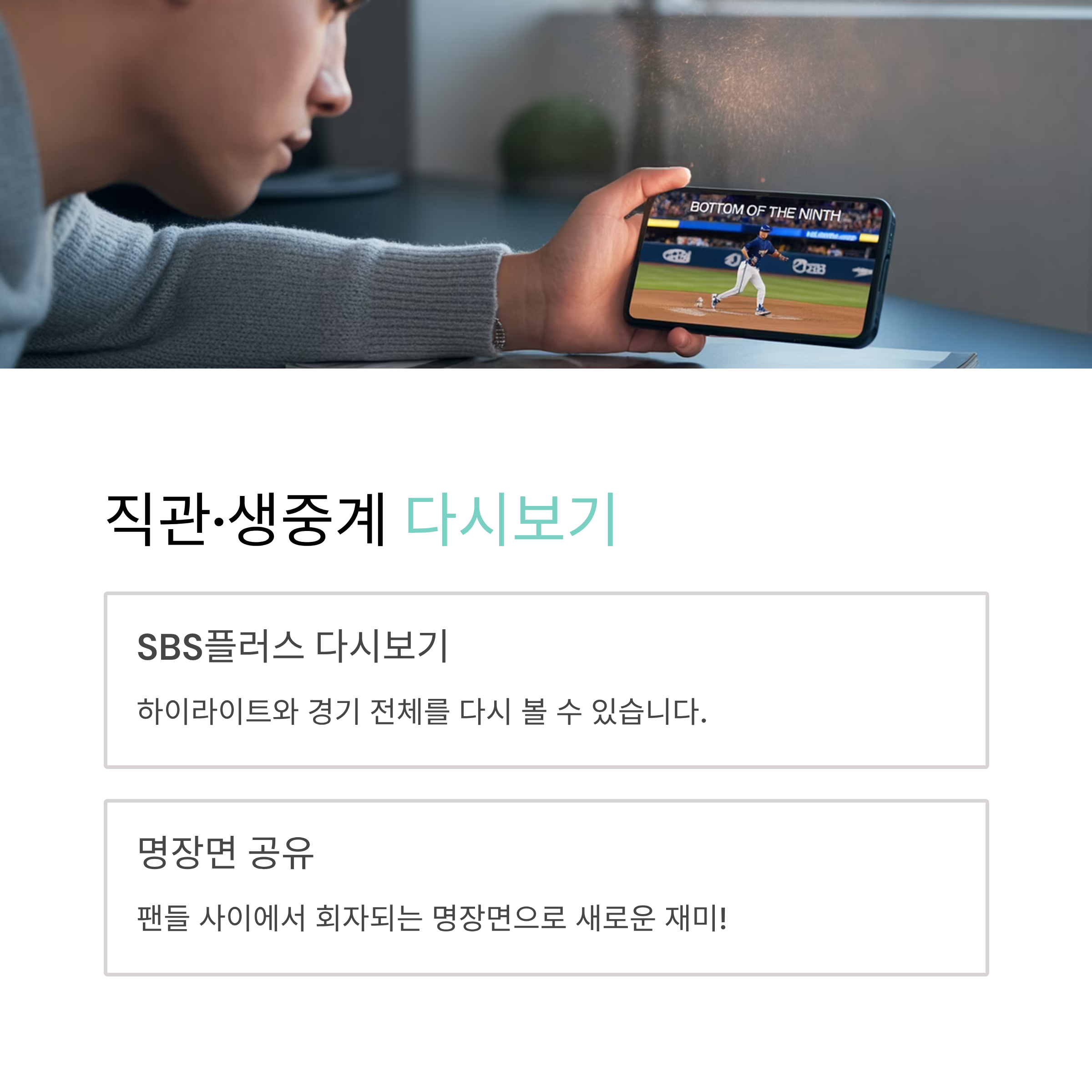 직관을 놓쳤더라도 SBS플러스의 다시보기 서비스를 통해 하이라이트와 경기 전체를 확인할 수 있습니다.