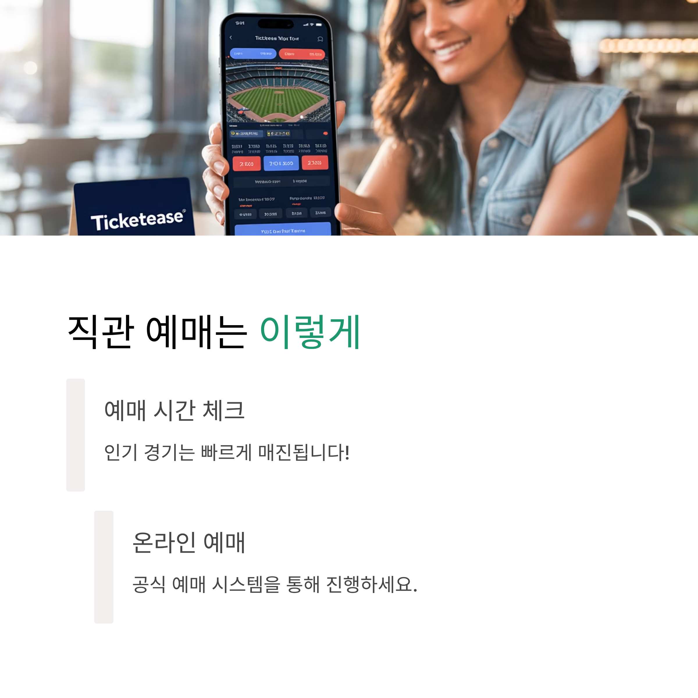 인기 있는 경기일수록 매진 속도가 빠르니 예매 오픈 시간을 미리 체크해두는 게 중요합니다.