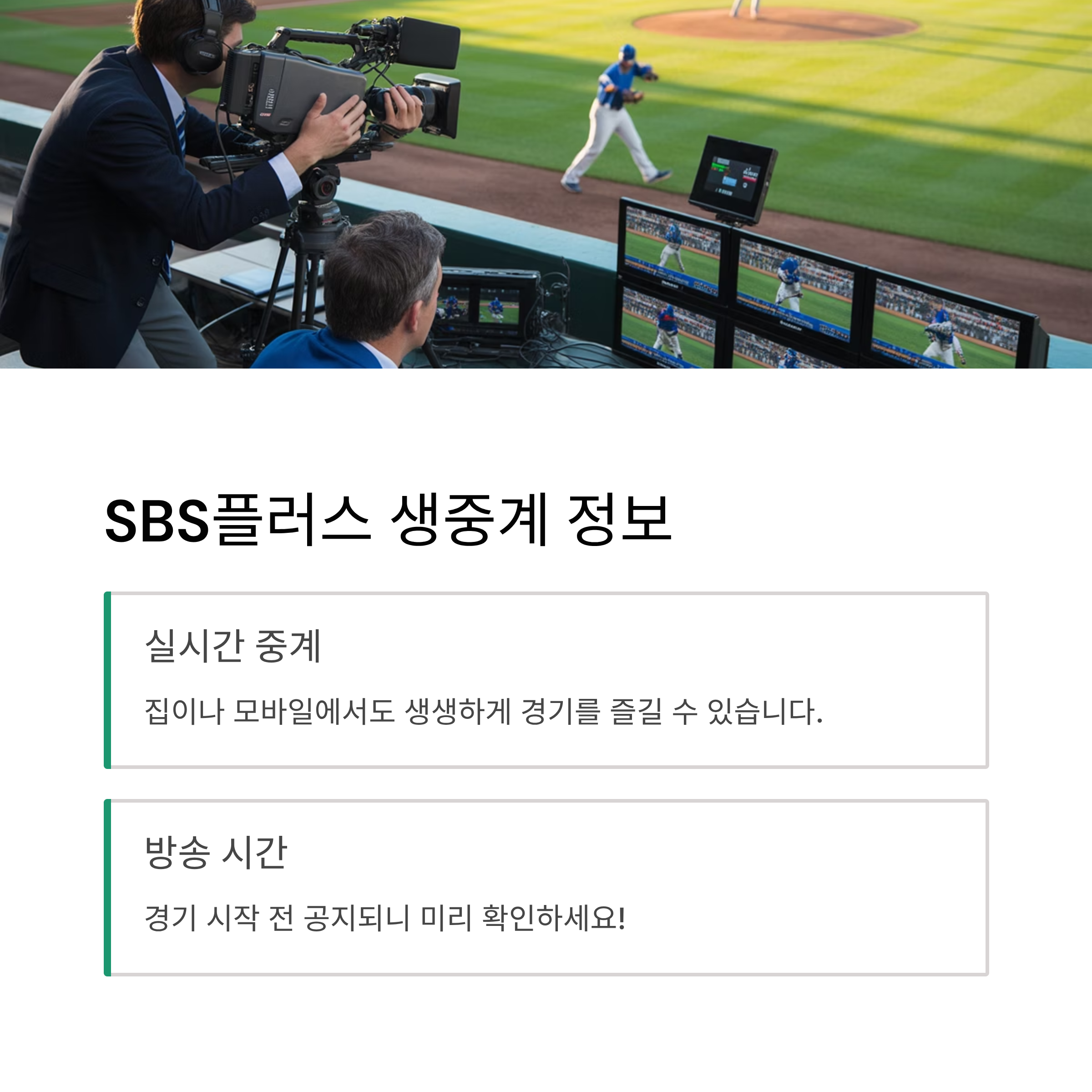 경기는 SBS플러스를 통해 실시간 생중계됩니다.