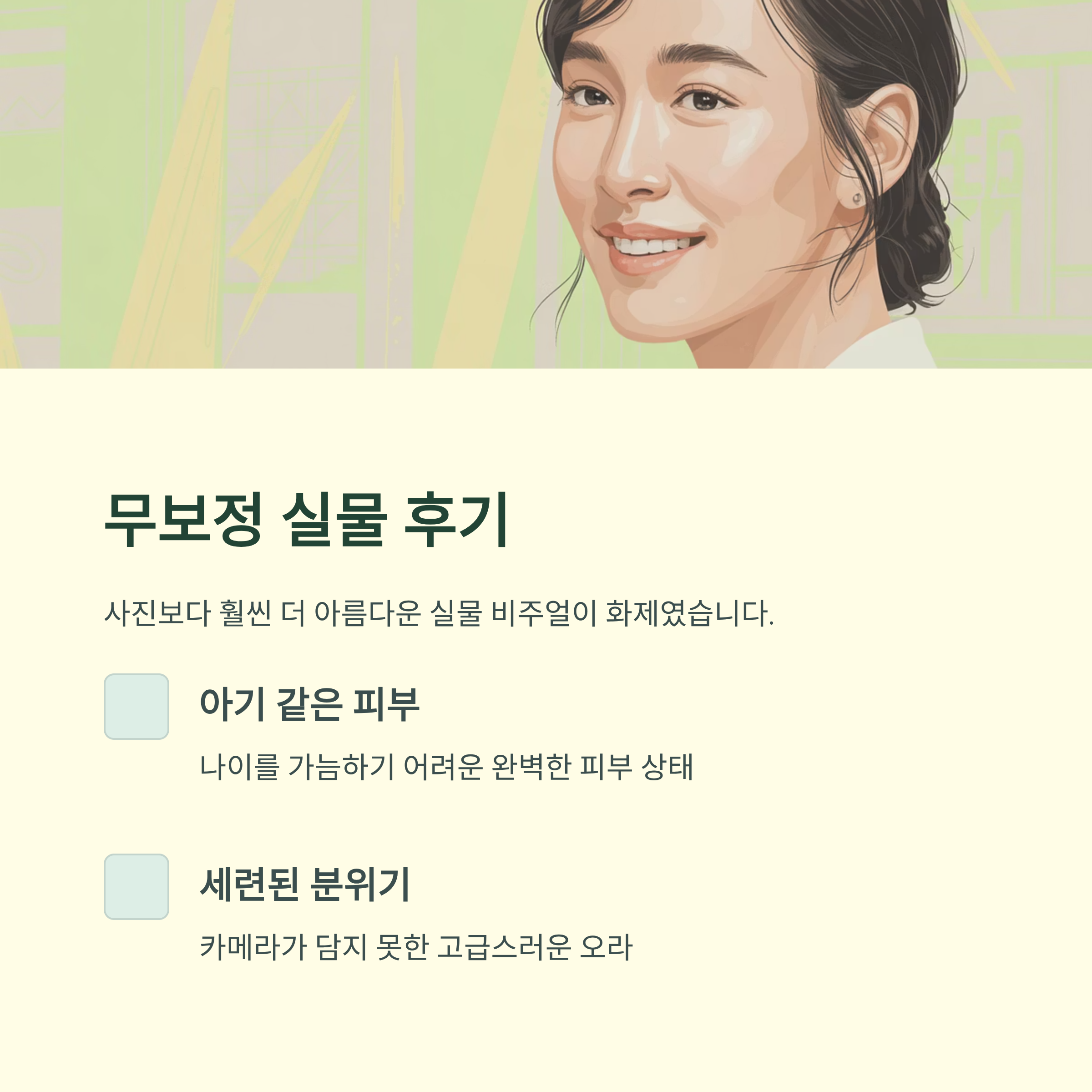 사진보다 훨씬 더 아기 같은 피부와 세련된 분위기를 보여주며,