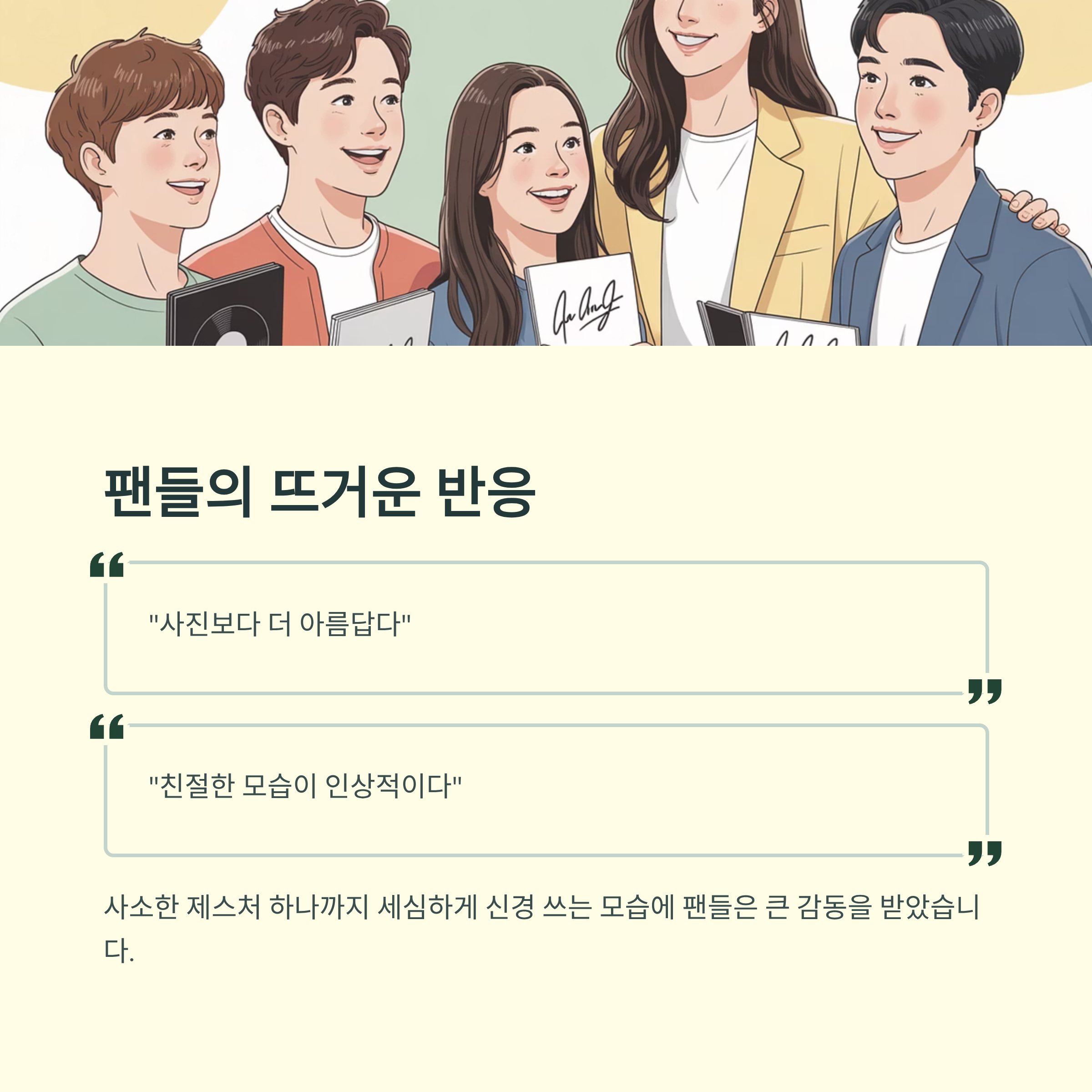 이번 팬사인회는 단순한 사인 이벤트가 아닌, 팬들과 진심 어린 교감을 나누는 자리였습니다.