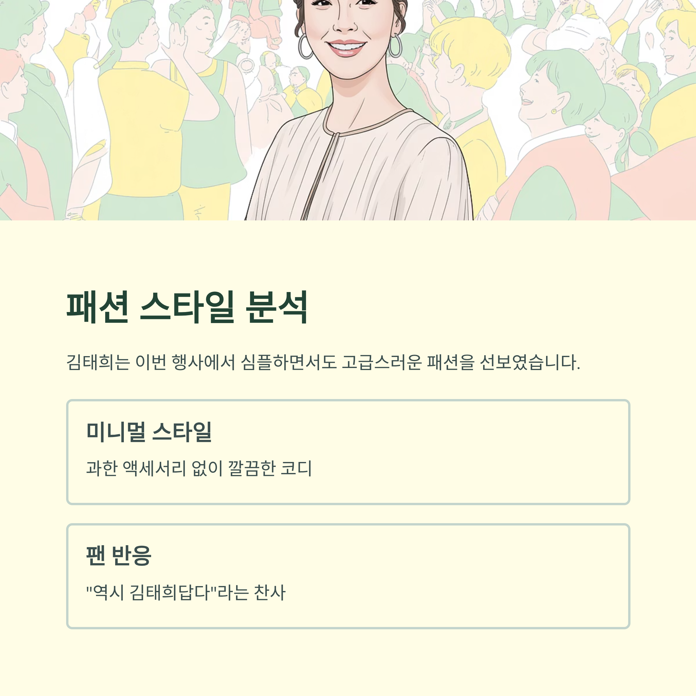 이번 글에서는 현장에서 확인된 김태희의 패션 스타일과 팬들의 반응, 그리고 그녀의 근황까지 정리해 보겠습니다.
