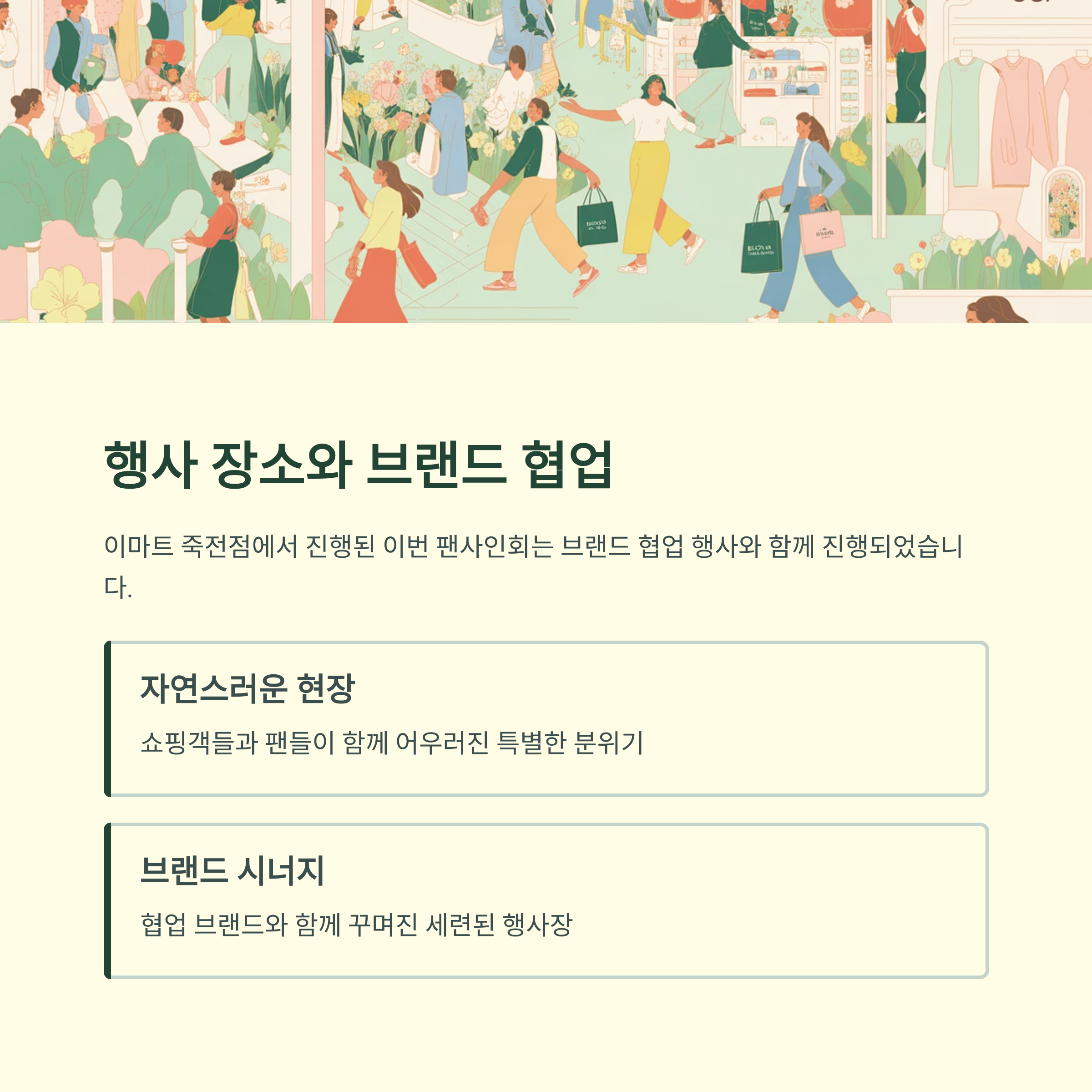 이번 팬사인회는 이마트 죽전점에서 진행되었으며, 협업 브랜드 행사와 함께 꾸려졌습니다.