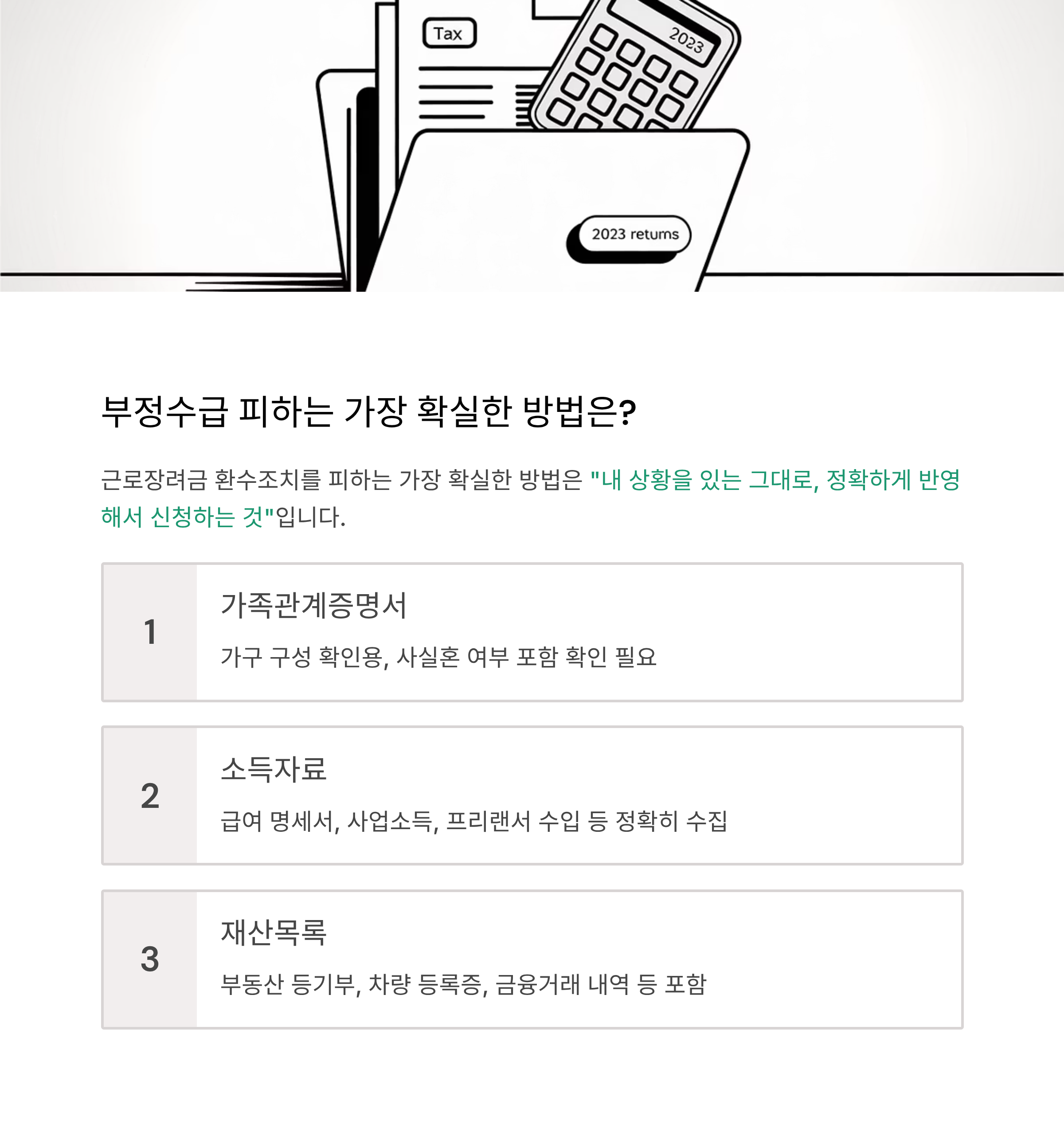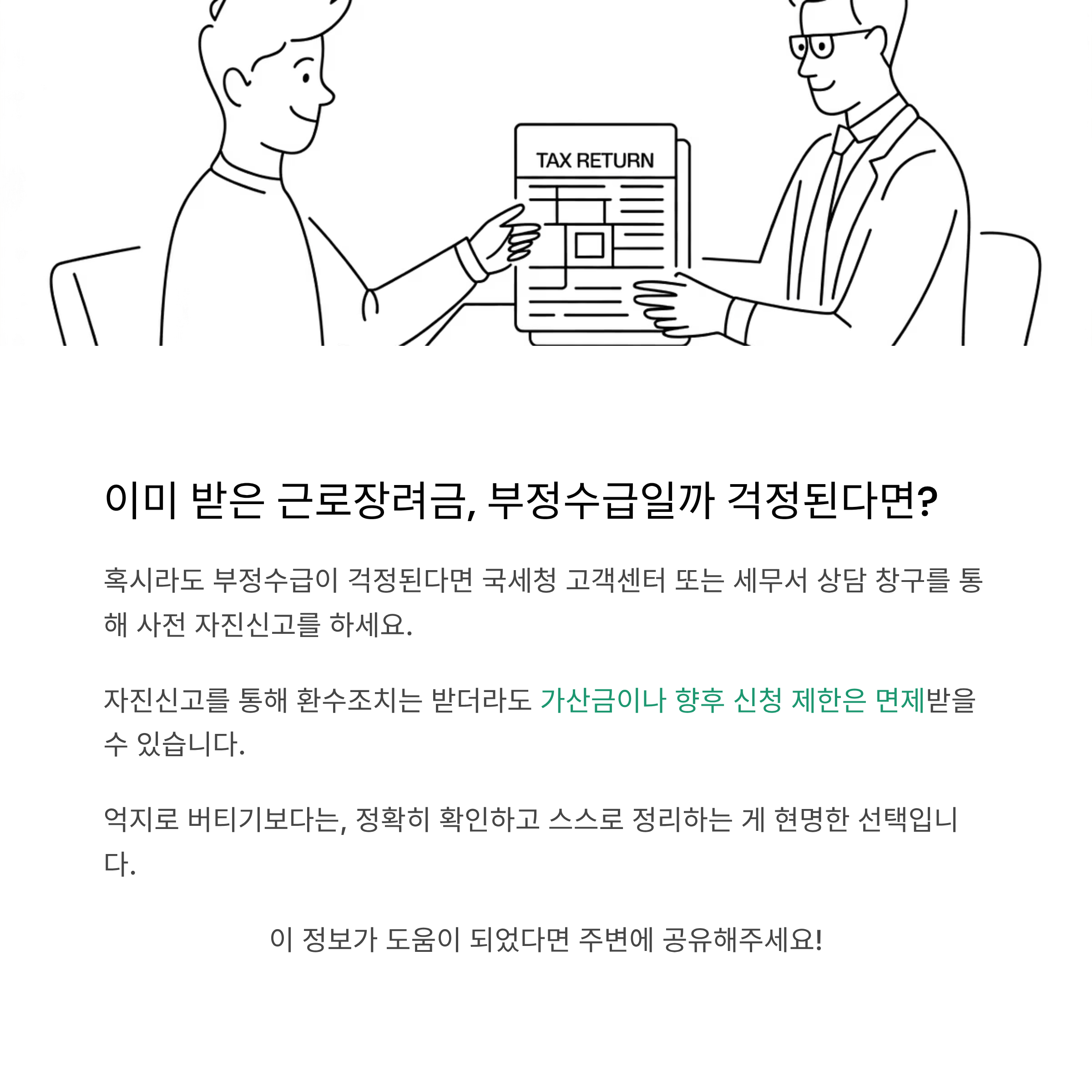 혹시라도 “이미 받은 근로장려금이 부정수급으로 분류되는 건 아닐까?” 걱정된다면