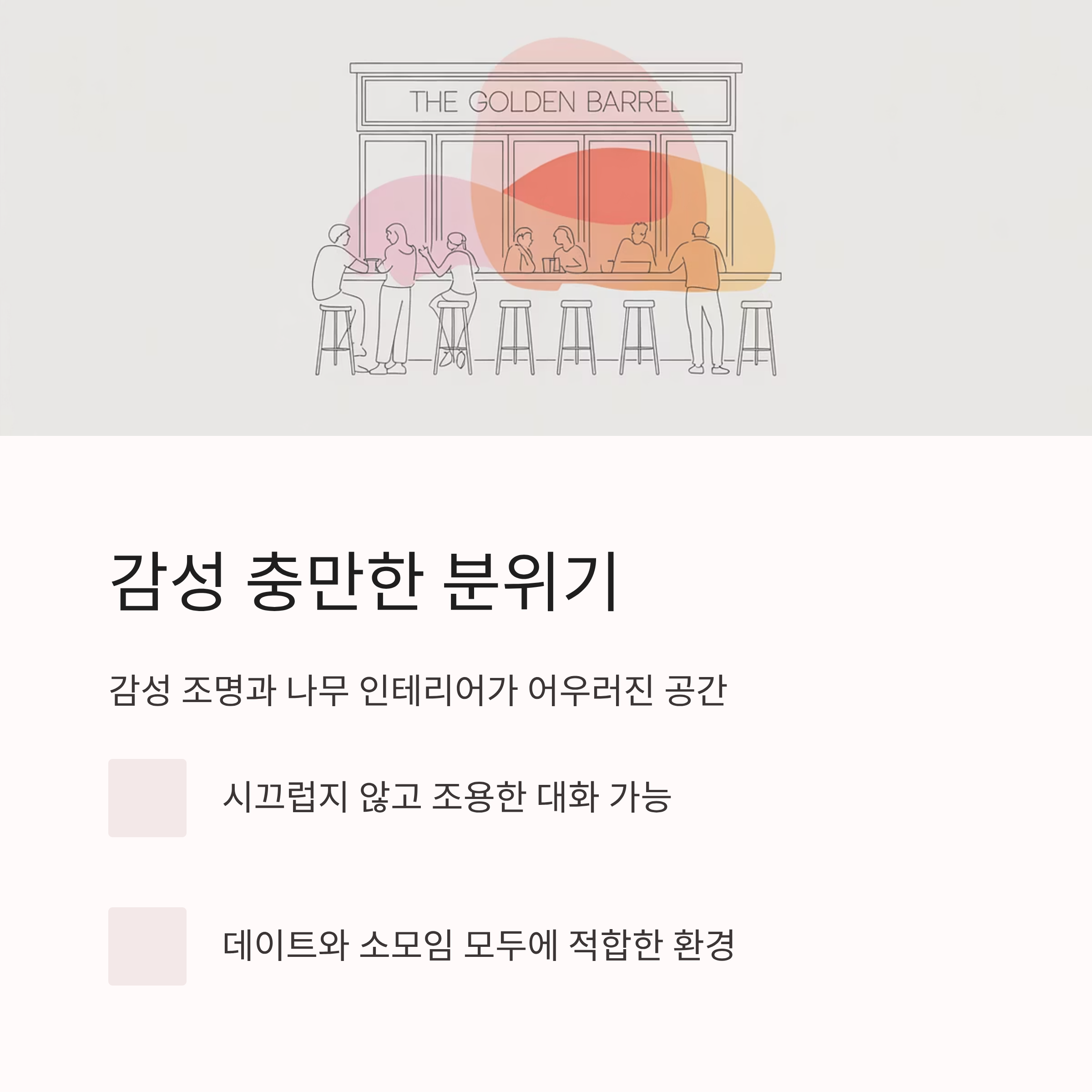 감성 조명과 나무 인테리어가 어우러진 공간은