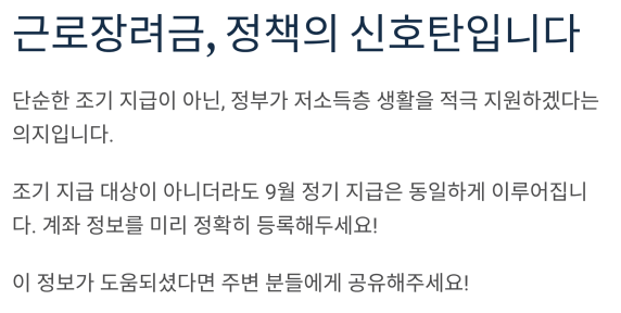 이번 글에서는 근로장려금 조기 지급 일정, 신청 여부와 무관한 지급 기준,