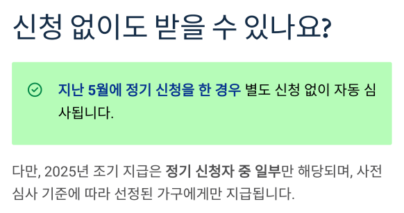 다만, 2025년 조기 지급은 정기 신청자 중 일부만 해당되며,