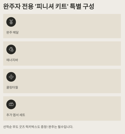 | 피니셔 메달 | 기본형 | 프리미엄 골드 에디션 |