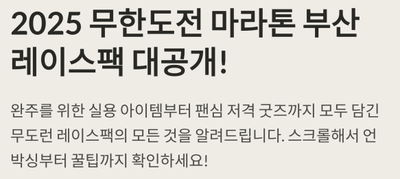 2025 무한도전런 부산 레이스팩 구성 공개!