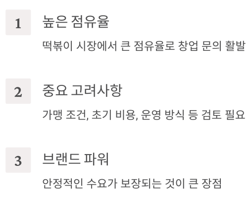 떡볶이 시장에서 큰 점유율을 차지하고 있는 만큼 창업 문의도 활발합니다.