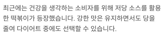 최근에는 건강을 생각하는 소비자를 위해 저당 소스를 활용한 떡볶이도 등장했습니다.