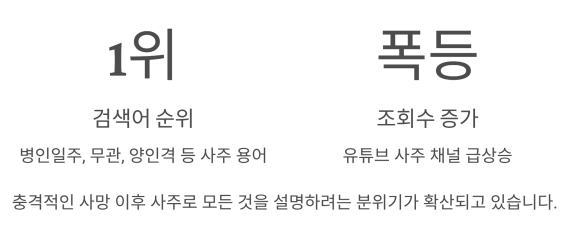 "병인일주, 무관, 양인 격"과 같은 용어가 검색어 상위권에 오를 정도죠.