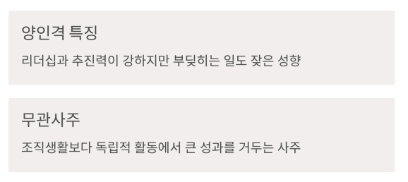 양인 격은 리더십과 추진력이 강하지만, 반대로 부딪히는 일도 잦다는 특징이 있죠.