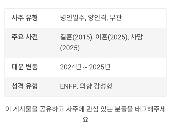전 아내 윰댕이의 사주도 함께 분석한 콘텐츠들이 많습니다.