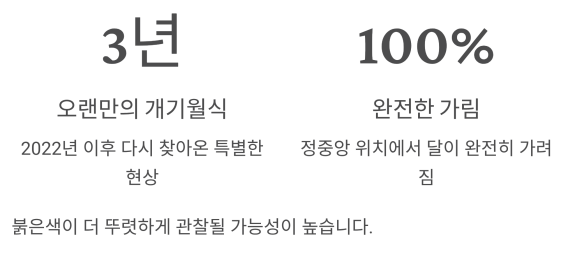 이번 월식은 2022년 이후 3년 만에 다시 찾아온 개기월식입니다.