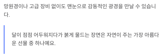 맨눈으로 관찰해도 감동적인 광경을 만날 수 있습니다.