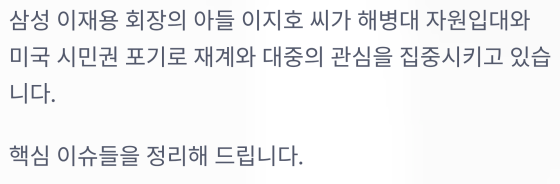 삼성 이재용 회장의 아들 이지호 씨가 해병대에 자원입대하고 미국 시민권을 포기했다는
