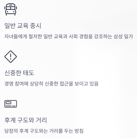 삼성 일가는 자녀들에게 철저히 일반 교육과 사회 경험을 중시하는 것으로 유명합니다.