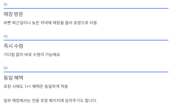 포장 시에도 1+1 혜택은 동일하게 적용되며,