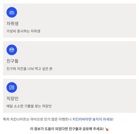 특히 치킨나이트는 야식으로 인기 많은 이벤트니 치킨러버라면 놓치지 마세요!