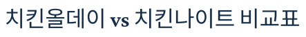 치킨올데이 vs 치킨나이트 비교표