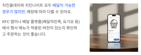 치킨올데이와 치킨나이트 모두 배달이 가능한 경우가 많지만, 매장에 따라 다를 수 있어요.