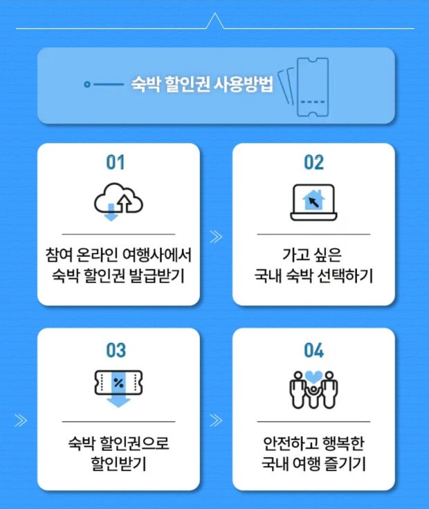 2025년 5월 28일 오전 10시부터 총 41개의 온라인 여행사(OTA)를 통해 숙박 할인권을 발급받을 수 있습니다. 여행사 홈페이지에서 본인 인증 후 쿠폰을 다운로드하고, 숙소 예약 시 적용하면 됩니다.