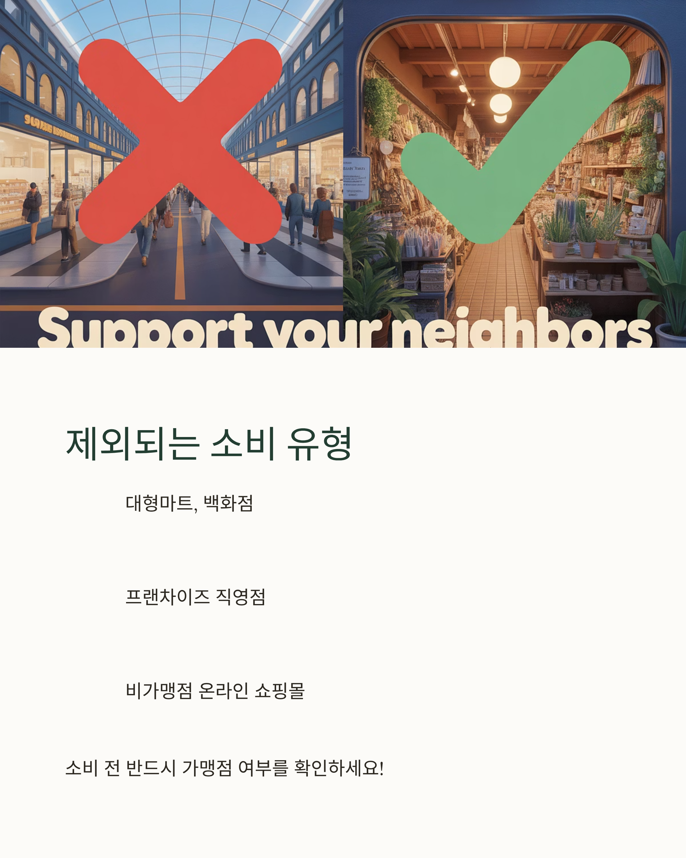 대형마트, 백화점, 프랜차이즈 직영점 등은 대부분 제외됩니다.