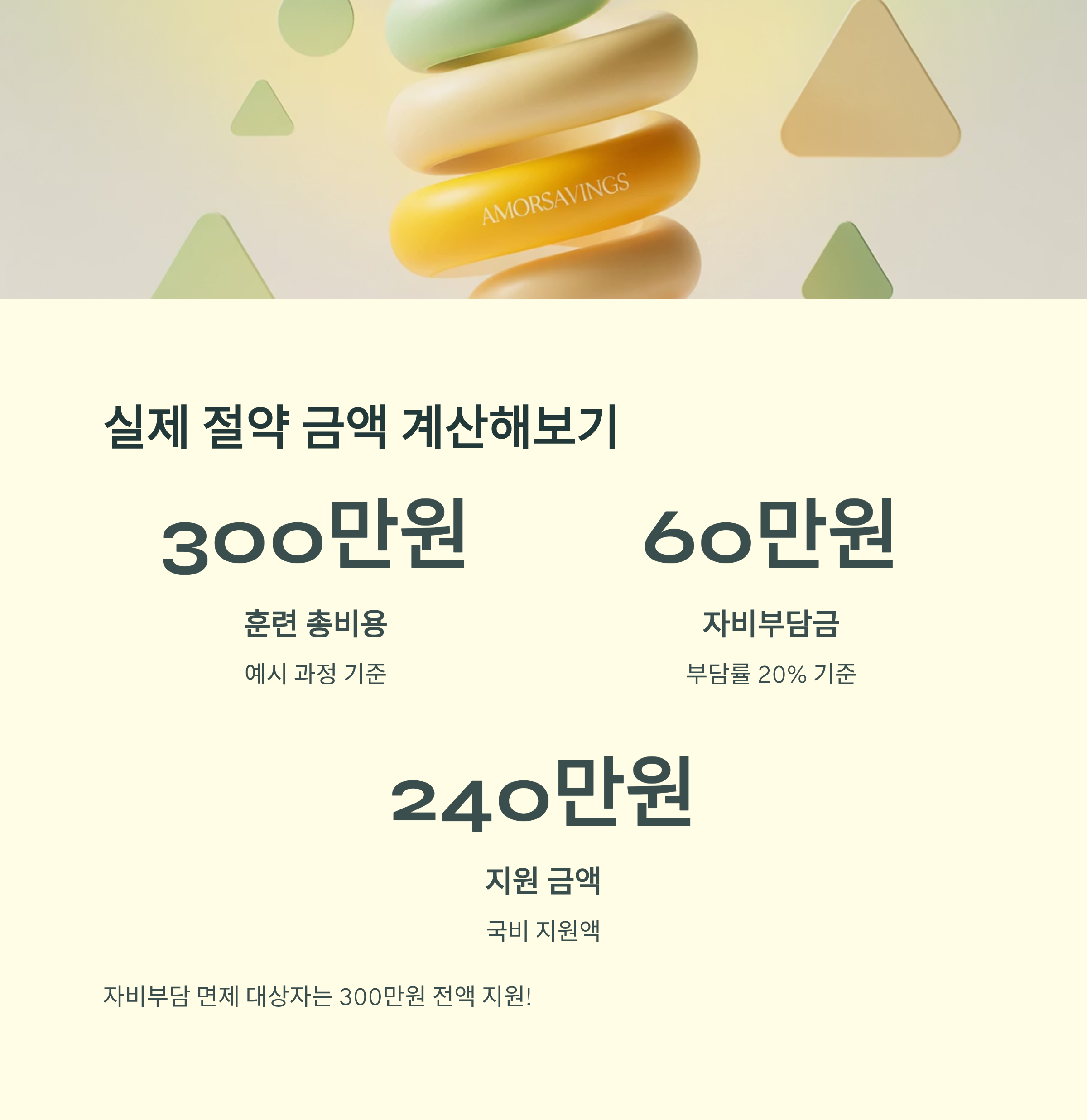 이 지원금은 훈련과정을 수강할 때 직접적으로 차감되며, 수강료 일부만 자비로 부담하면 됩니다.