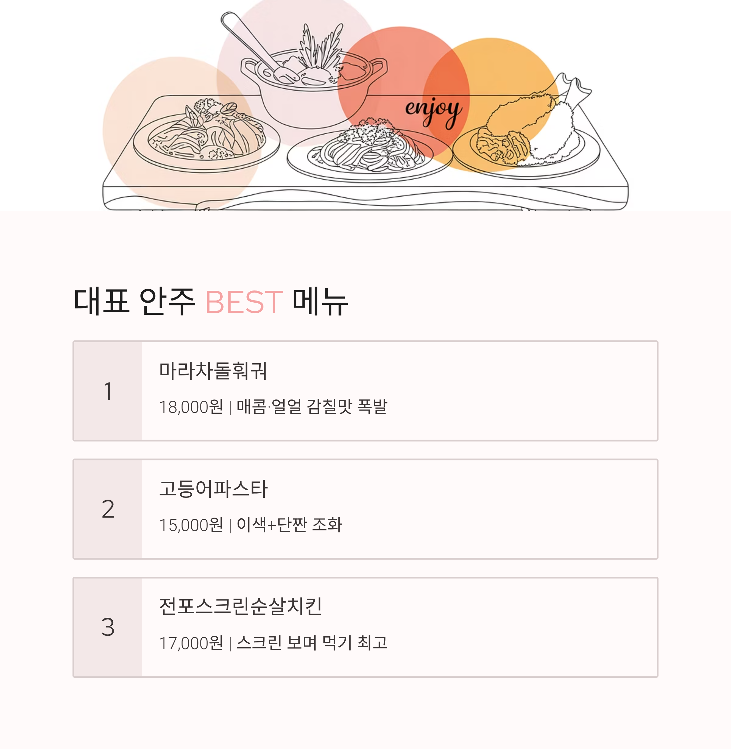 대표 안주 BEST 메뉴는?