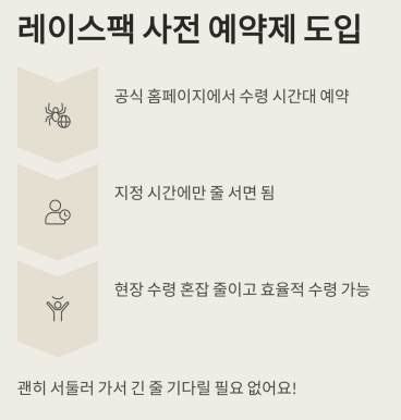 올해부터는 레이스팩 ‘사전 예약제’가 도입돼 현장 수령 혼잡을 줄였어요.