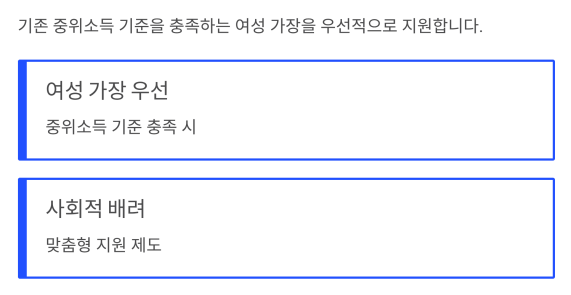이 제도는 특히 기존 중위소득 기준을 충족하는 여성 가장을 우선적으로 지원합니다.