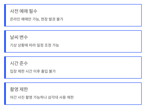 - 온라인 사전 예매 필수, 현장 발권 불가